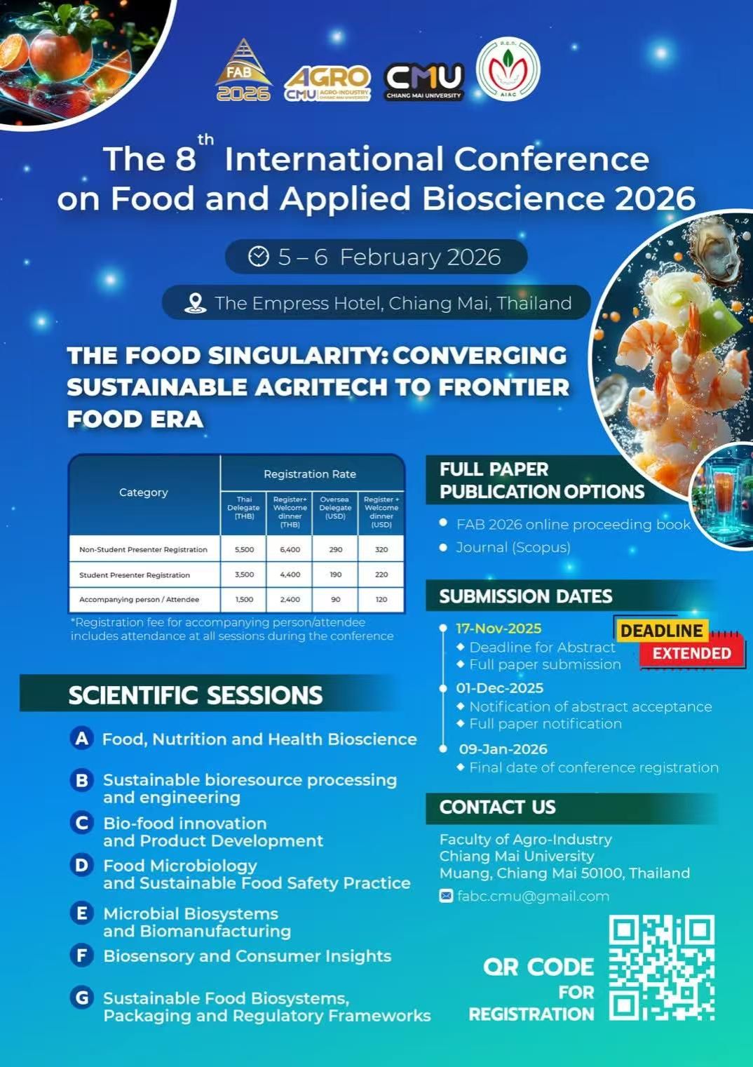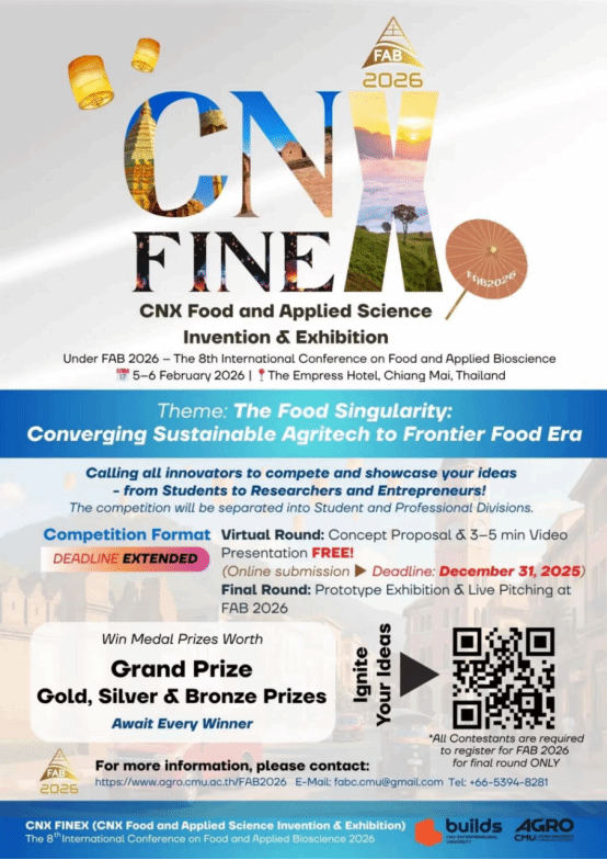 为进一步拓宽学生的国际视野,提升学生综合素质与全球胜任力,我院拟选派一批优秀学生于2026年寒假赴泰国清迈大学交流学习并在交流期间参加由邀请单位举办的第8届食品与应用生物科学国际会议。