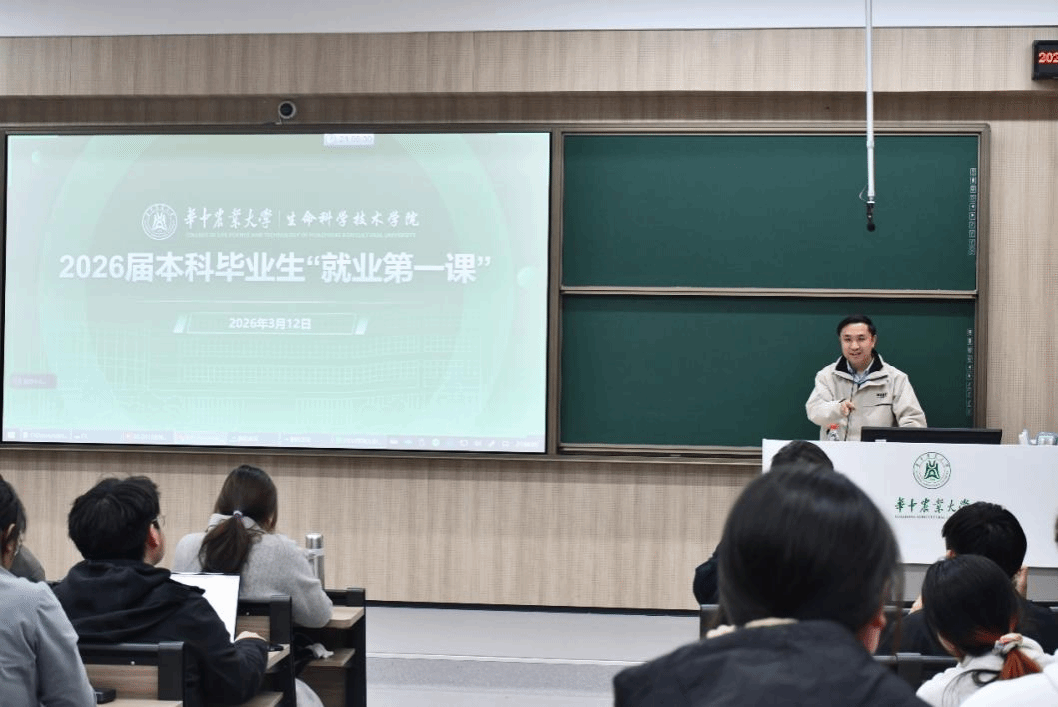 (通讯员:高文博 王庆鲁)3月12日晚,生命科学技术学院在第三教学楼A105举办2026届本科毕业生“就业第一课”活动。学院党委副书记唐永木、教务秘书左覃艳、辅导员王庆鲁,以及全体350余名本科毕业生参加活动。
