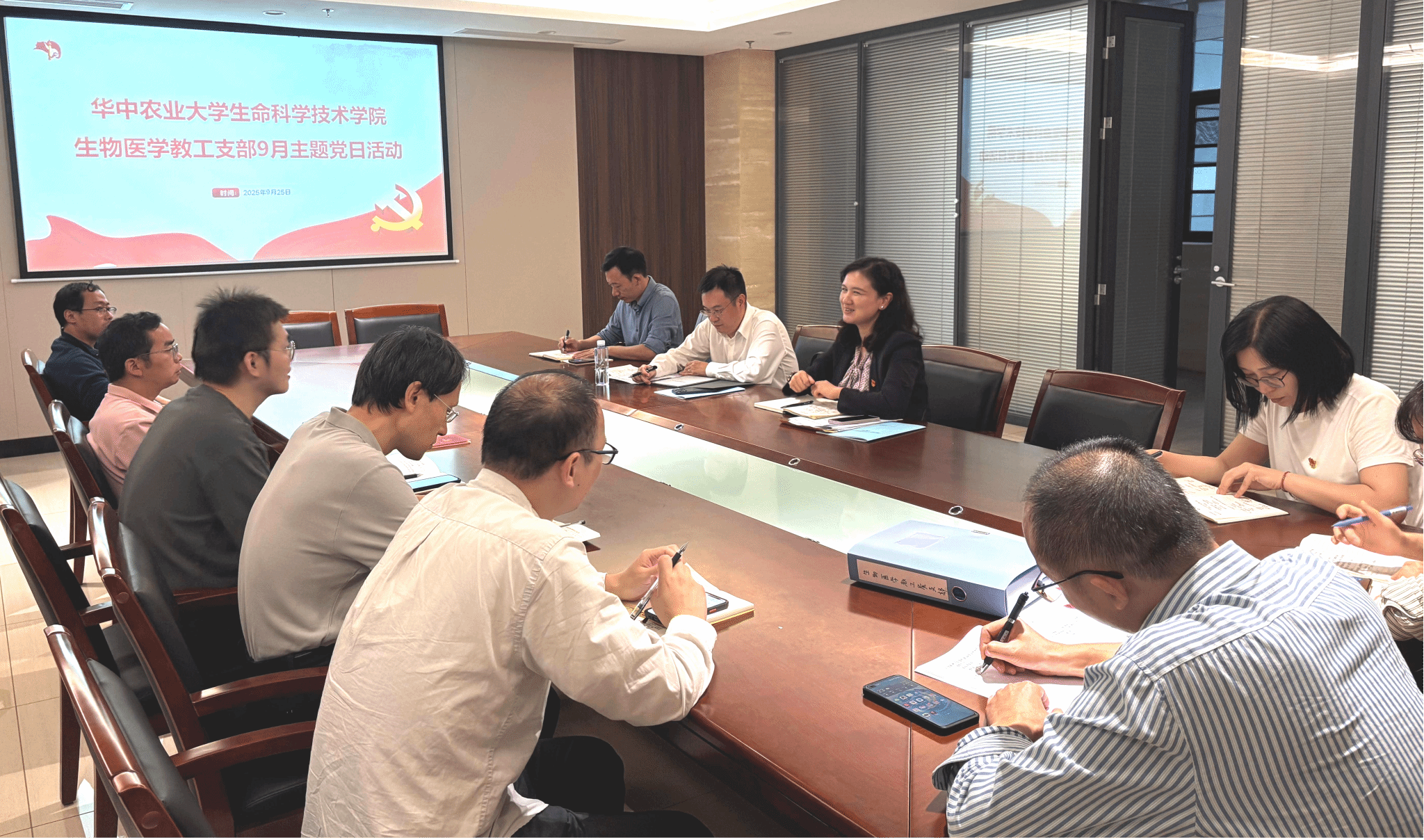 (通讯员 石秀娟)9月25日下午,生物医学教工党支部在农业微生物资源挖掘与利用全国重点实验室D座C109会议室召开9月主题党日活动。本次会议由支部书记姚帆同志主持,生命科学技术学院党委书记范金凤出席会议,支部全体党员参加大会。