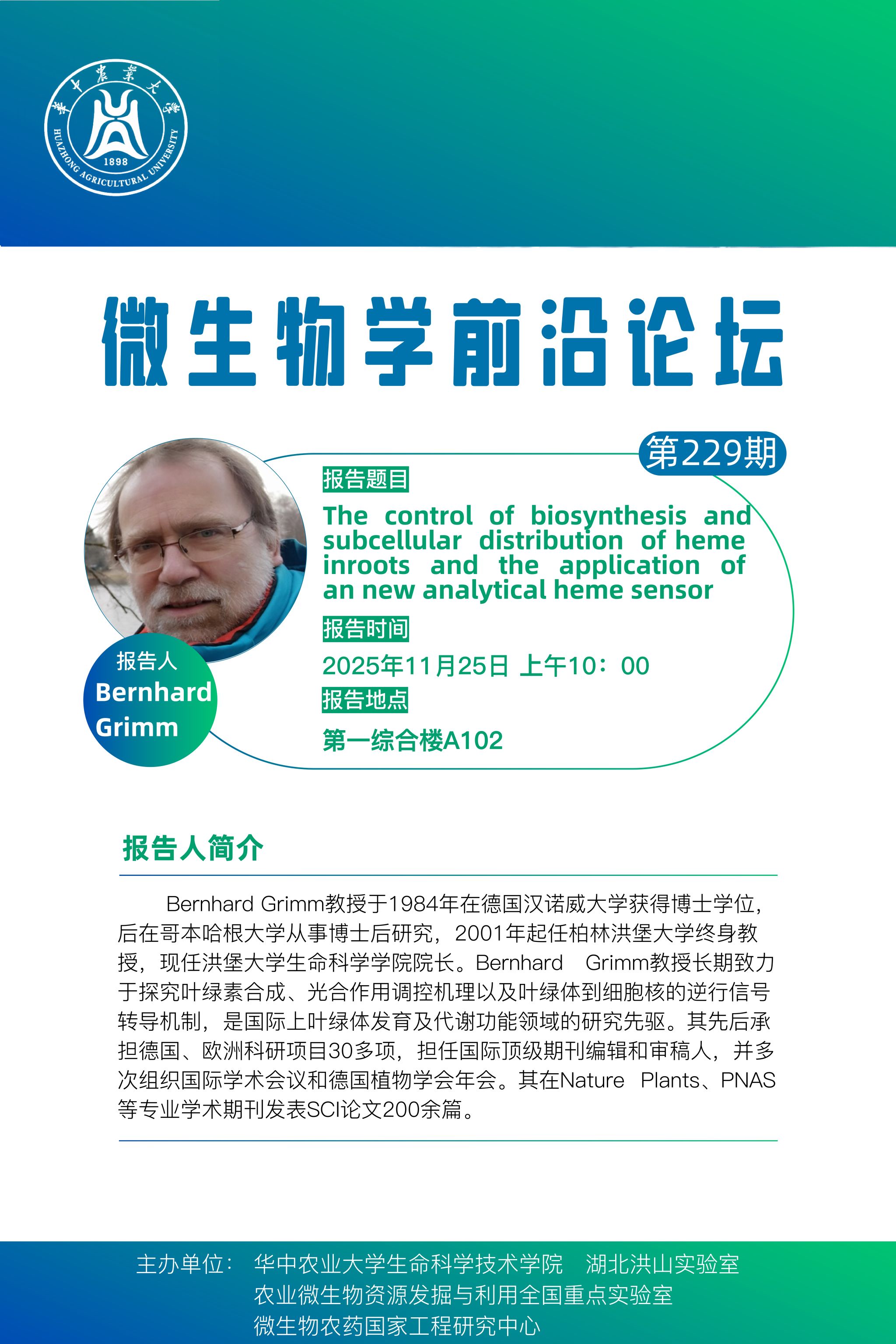 活动时间 2025年11月25日 上午10:00 报告题目 第229期微生物学前沿论坛