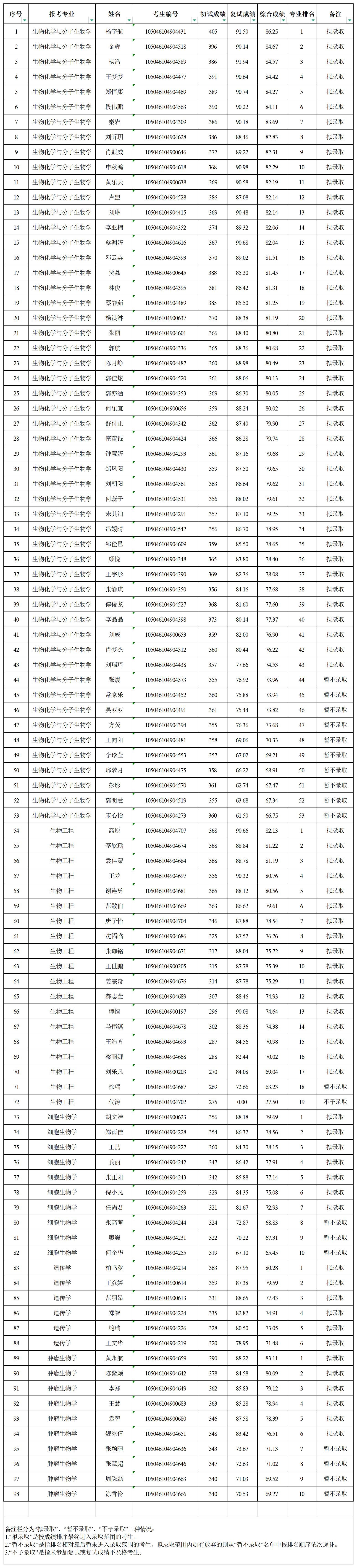 学术型硕士研究生复试成绩公示(不含微生物学专业)